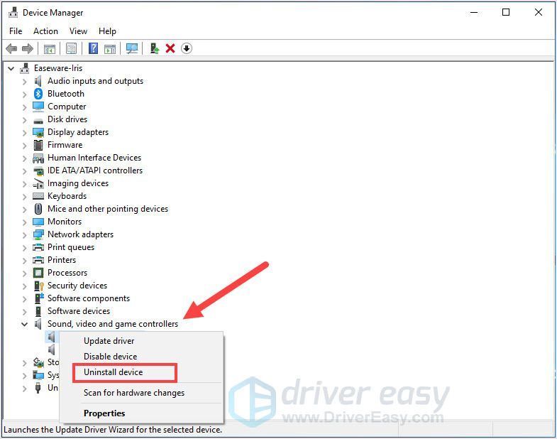 - Conexant를 마우스 오른쪽 버튼으로 클릭하고 기기 제거 .